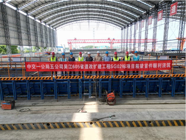 近日,中交一公局五公司江苏吴江605项目首件箱梁顺利浇筑,为后期桥梁上部结构施工推进奠定了基础。
